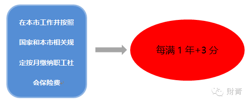 *高积20分持证人在本市重点发展的远郊区域工作并居住,每满1年积2分,满5年后开始计入总积分,*高分值20分。